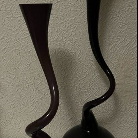 Sæt bestående af tre vaser/ lysestager fra Normann Copenhagen i forskellige farver: sort (20cm), grå (30cm) og hvid (20cm). Vaserne har unikke former med en slank og snoet design
