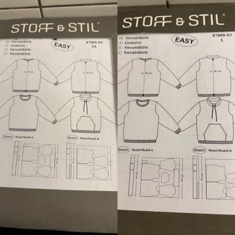 Stoff & Stil Easy Syopskrift til sweatshirt med detaljerede syinstruktioner. Designet til at sy en sweatshirt med for- og bagstykke, ærmer og ribkanter. Indeholder mål og vejledning til samling af delene. Velegnet til brug med sweatshirtstof.