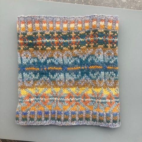 Praktisk, pænt og varmt halsrør i strikket uld. Længde 45 cm. Bredde 26 cm.
