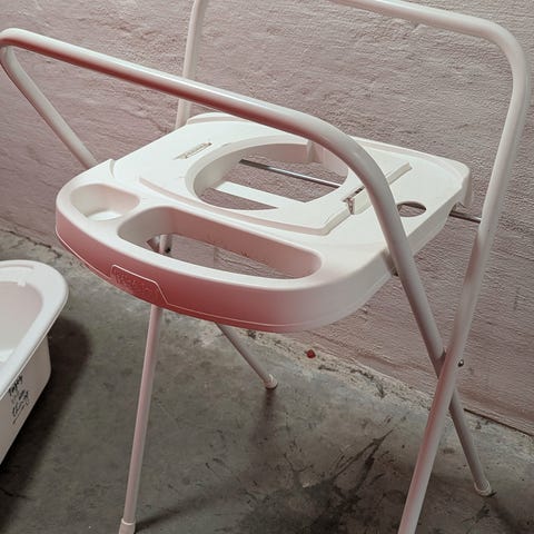 Baby badekar i rigtig god stand. Sidde-indsats og stativ er inkluderet.