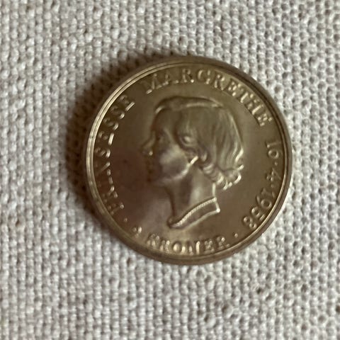 Den anden side: Tekst: FREDERIK IX KONGE AF DANMARK. Initialerne "N" og "S" og mellem dem - Den Kgl. Mønts hjerte.