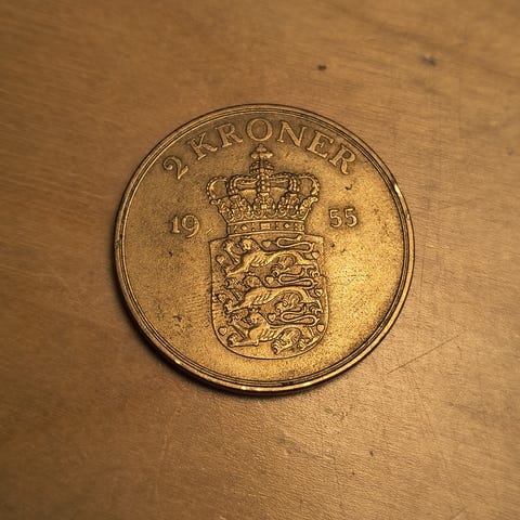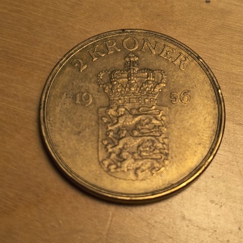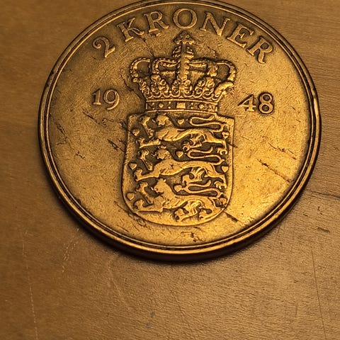 Frederik IX mønt - To kroner, årgang 1952 fra Danmark. Også kaldet Tokronesmønten.