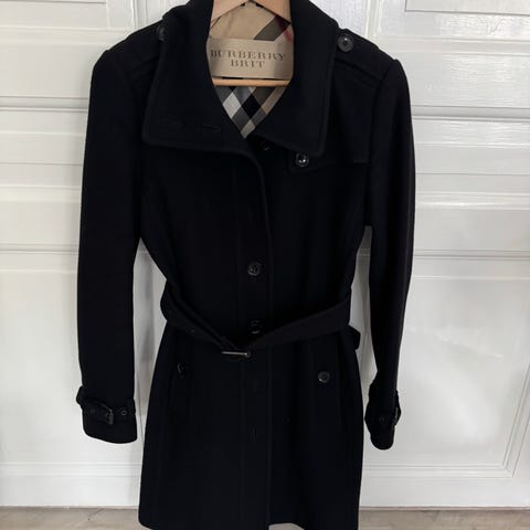 Burberry Frakke i størrelse 36 til kvinder. Jakken er beige og lavet af bomuld. Designet som en klassisk frakke med knapper og bælte.