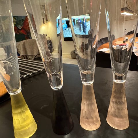 50 stk Champagneglas sælges. Der er 2 forskellige modeller. Den ene model er der 26 stk glas, mens den anden model er der 24 stk.