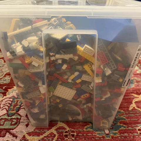 Stor flyttekasse med 16,5 kg blandede nyere Legoklodser