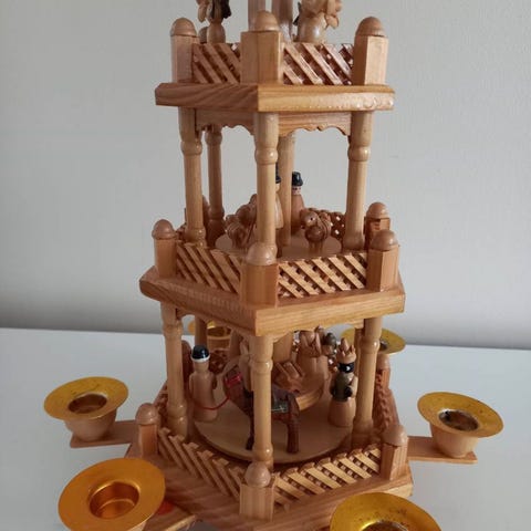 tudse gammel karusel med masser af charme og patina. Mangler en lysholder, og pladen skal limes fast på stangen. H 35.