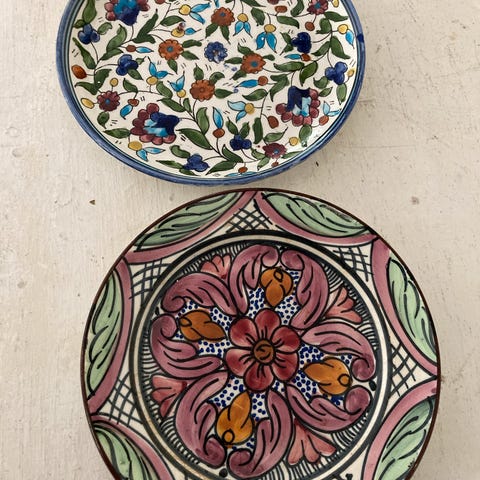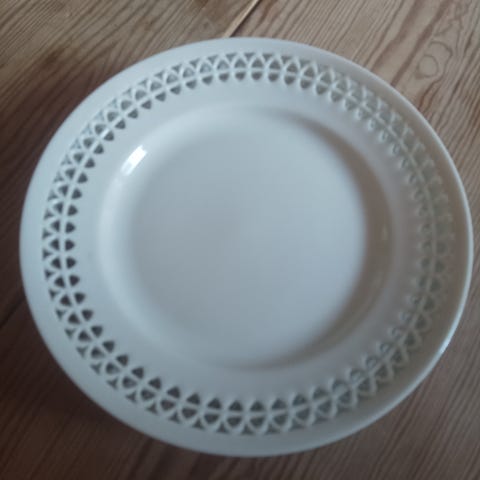 Seks blå-glaserede tallerkener. Ø 16 cm