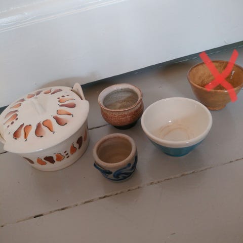 7 skåle med tilhørende låg. Højde uden låg: 6 cm. Med låg: 9 cm. Ø: 12,5 cm