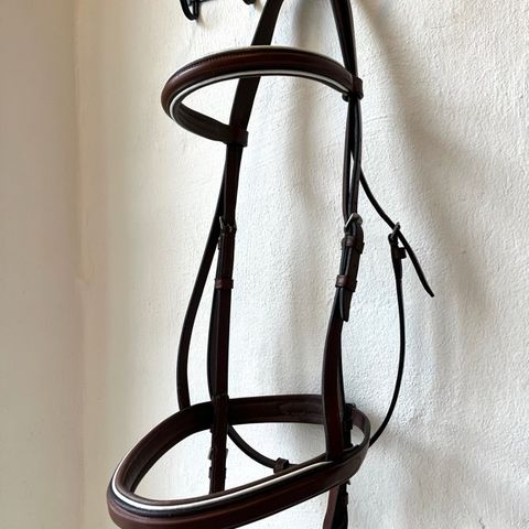 Flot brun trense med tøjler sælges.
