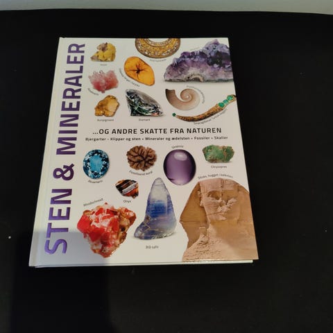 Bog med titlen 'Sten I Farver', der fungerer som en håndbog om sten og geologi. Indeholder information om mineraler, bjergarter og fossiler samt deres farver og egenskaber. Bogen er illustreret med billeder og beskrivelser, der kan bruges til identifikation og studie af forskellige typer sten.