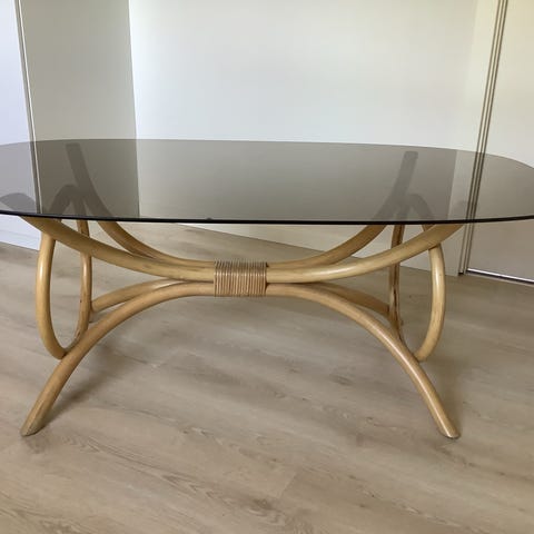 Flot sofabord i bambus med glasplade