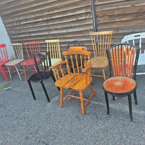Charmerende pindestol med lidt skrammer som kan ses på billede 6 og 9, ellers I fin stand og fuldt funktionel.