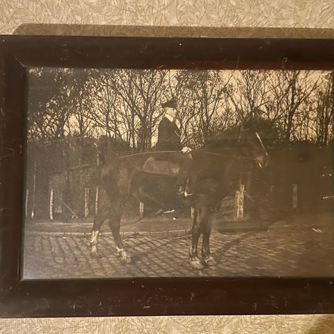 Hestefoto, motiv: 4 Heste, Superflot hestebilled måler 50x40 cm det er ældgammelt men i skifteramme