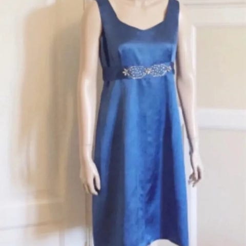 Utroligt fint broderi ved halsen af perler og facetslebne sten. Foret. Lynlås i ryggen.