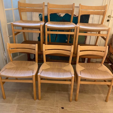 Stolene sælges samlet til 14.400,00 kr. (dvs per stk. 2.400,00 kr)