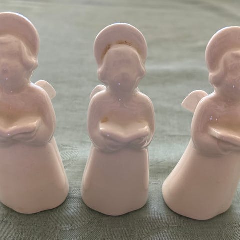 Bing & Grøndahl Jul dekorationsfigurer i porcelæn. Bedstemor med muffe og bedstefar med pibe. Sælges samlet