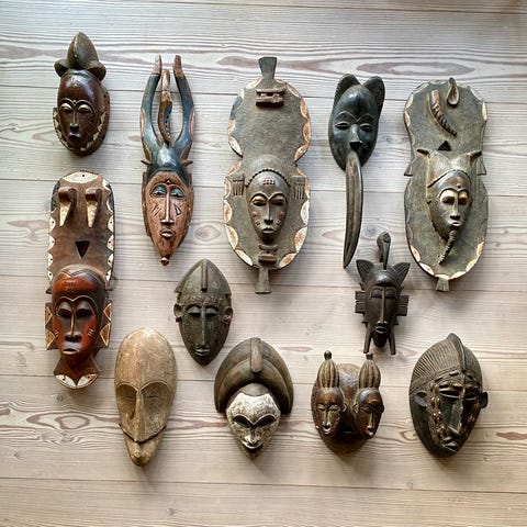 Andre samleobjekter, Afrikanske masker, 3 stk afrikanske masker, købt i bukino Faso i 1980, virkelig dekrotive.