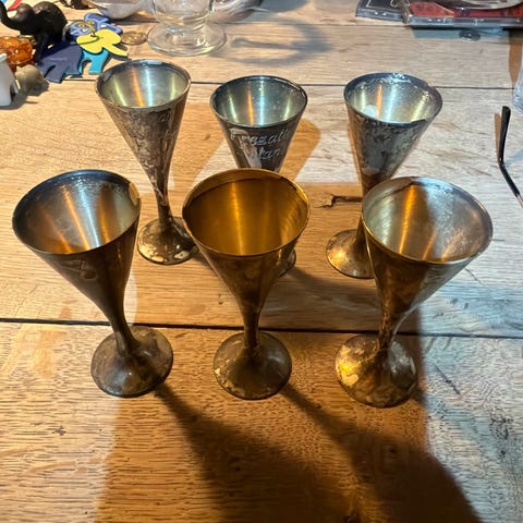 ⚓️🛟 Fregatten Jylland, Sølvtøj, Snapseglas Dramglas Shots, 2 stk Sølvsmed