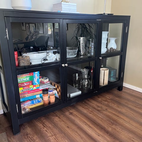 Jeg har i samme stil både 2 vitriner og TV bord, og samlet kan laves en god pris.