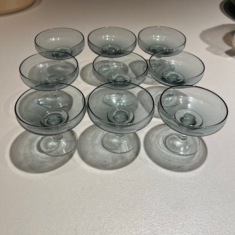 Holmegaard Canada, klar glas, 6 stk. Design 1955 af Per Lütken. Kan bruges til champagne, eller isdessert. Pris pr. stk. 140 kr.