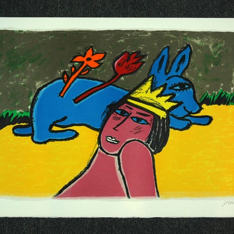 Corneille - komposition med kvinde (signeret i bly: Corneille)