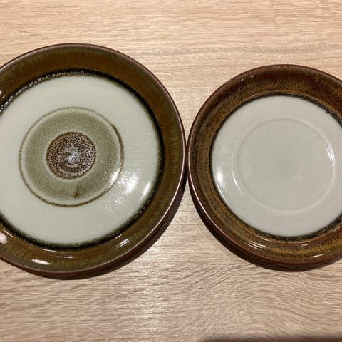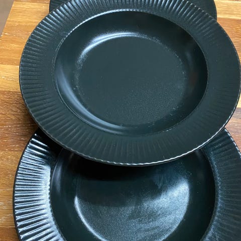 4 frokosttallerkner og 2 middagstallerkner i stentøj i farven stone.