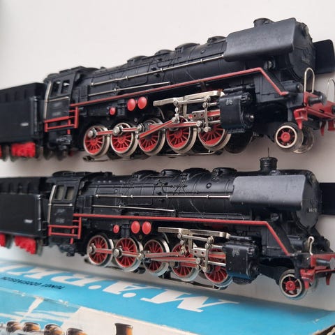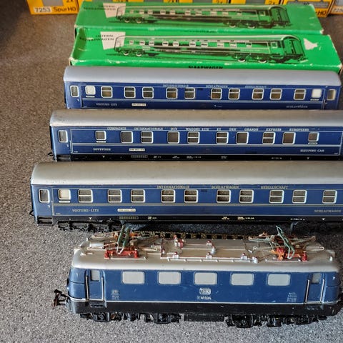 Märklin DB-sæt. Eksprestogslokomotiv #3048 og 2 X vogne. AC analog-kørsel, vekselstrøm. Lok kører, blot testet for funktion - vl nok ikke tage skade af service og smøring. Omskifter skal kigges på. Hæftering skal skiftes. Brugt æske, årgang 1962. Fremstår i ok brugsstand - vognene ligeledes. Skala h0, 1;87. Klassiske og robuste modeller fra 1960ernes Vesttyskland. NY pris