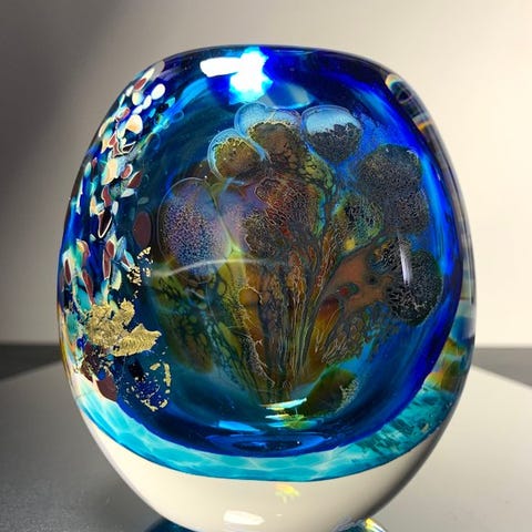Unikt coupe- og midterstykke på 26 cm i diameter af den franske kunstner og mester-glarmester Maxence PAROT.
