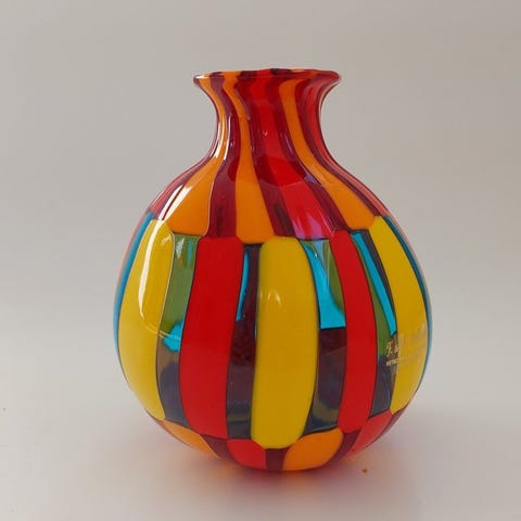Signeret glasvase fra Rumænien, dateret 2000–2010, 11 cm høj, 11 cm bred, 8 cm dyb, diameter 8 cm, vægt 0,3 kg, i næsten ny stand. Klik på den blå "gå til varen" knap, for at købe eller byde på denne vare. Den samlede pris vil blive vist inden du afgiver dit bud.