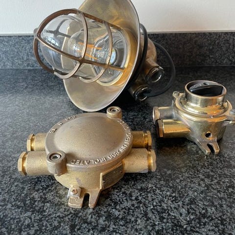Polen Polam Wilkasy industriel kube lampe fra 1960'erne, støbt aluminium krop, klart glasdække og jerngitter, 51 cm høj, 23 cm i diameter, 6 enheder, i fremragende stand. Klik på den blå "gå til varen" knap, for at købe eller byde på denne vare. Den samlede pris vil blive vist inden du afgiver dit bud.