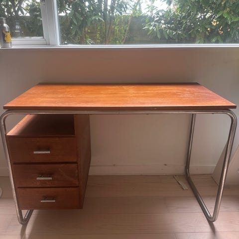 Skrivebordet har normale tegn på slitage på grund af alder og brug, og overfladen er blevet poleret med olie.