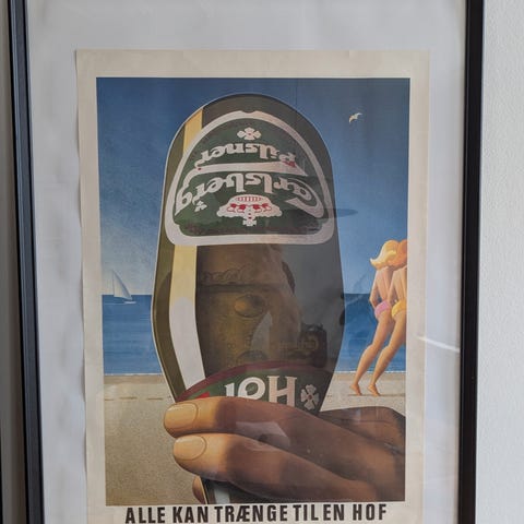 Et spektakulært teaterbillede fra Michael Joseph, Smirnoff Office Party, samler alt, der gjorde ham til en af de mest markante visuelle fortællere i sin æra: pragt, kaos, humor og en mesterlig forståelse for gruppedynamik. Hvert eneste hjørne af rammen summer af liv — statuer, hunde, kostumer, frugt, glas, karakterer, der kolliderer i omhyggeligt arrangeret uorden. Det er visuel overflod udført med præcision.
