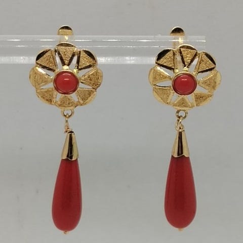 Øreringe - 18 kraat Gulguld Koral - Koral - Bearbejdet koral