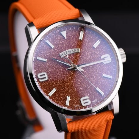 Hermann 1914 – sort aventurin – Swiss Made – unikt detaljer på rotor