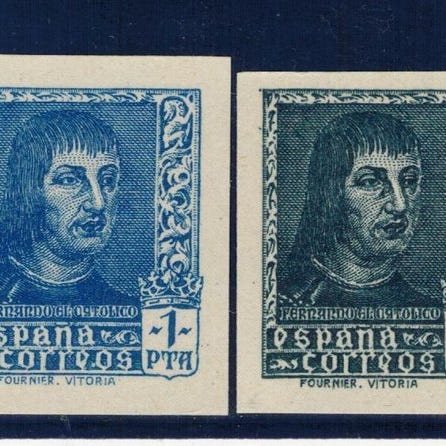 Spanien oprindelse; Samling frimærker i blokke af 4; Ny uden gum (Nuevo sin fijasello). Klik på den blå "gå til varen" knap, for at købe eller byde på denne vare. Den samlede pris vil blive vist inden du afgiver dit bud.