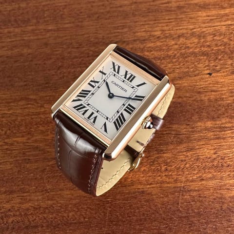 Hemmeligt Cartier-signatur ved VII. Dato kalender ved kl. 3-åbningen. Sort læderrem med