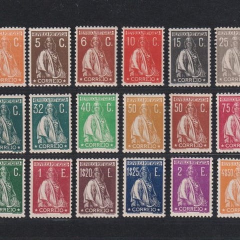Portugal, komplette Ceres-serie fra 1912, Mundifil 206/220, ny uden hængsler. Klik på den blå "gå til varen" knap, for at købe eller byde på denne vare. Den samlede pris vil blive vist inden du afgiver dit bud.