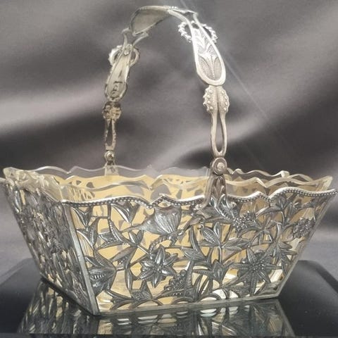 12-delt fiskebestiksæt i art nouveau-stil med bølgebåndsdesign - Model 37, fremstillet af WMF Geislingen. Sættet er til 6 personer. Hvert stykke er fremstillet i traditionel stil med solide håndtag dekoreret med flydende bånd. Kniv- og gaffeltænderne har stiliserede graveringer på forsiden, der fortsætter det dekorative mønster. Udsøgt håndværk i et vintage-design.