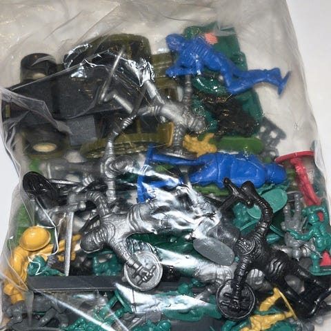 Forskellige biler, helikoptere mm. En hel pose med politi - og militærfigurer inkl. skydevåben. Leget flittigt med af min søn i flere år, men stadig i fin stand og velholdt. Fra røg - og dyrefrit hjem. Sælges samlet.