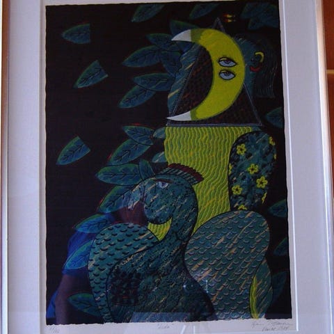 Bjørn T. Hansen - farvelitografi - Betitlet: "Komposition"