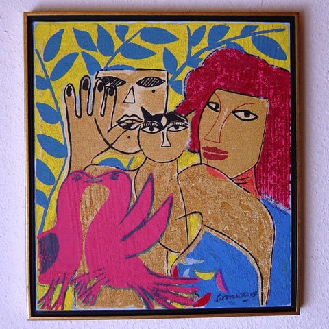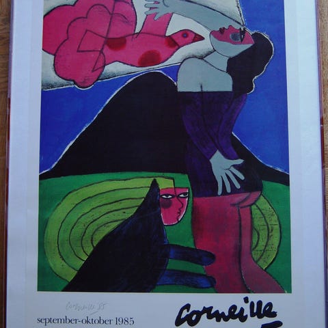 Corneille - den kendte hollandsk/franske Cobramaler. Medstifter af Cobrabevægelsen. Farvelitografi originalt nummereret og signeret Corneille 98 i bly. Komposition med kvinde og anskudt dyr.. Bladmål: 56 x 76 cm. (billedmål: 51 x 62,5) - ej indrammet.