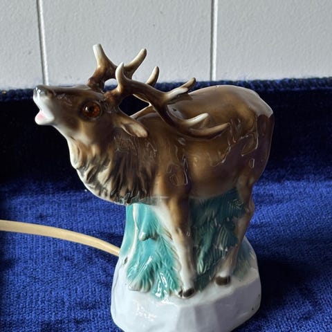 18. Rigtig fin ozon lampe i porcelæn af elefant med fatning og pærer sælges for 250,00 kr. Den er 20,5 cm høj, 17 cm bred og 9 cm dyb. Fremstår hel og fin uden afslag.