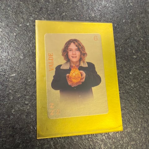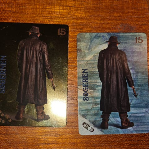 Kortet har et gyldent og mørkt farvetema med tallet 15 og teksten 'SØGERNEN' trykt på kortet.