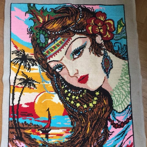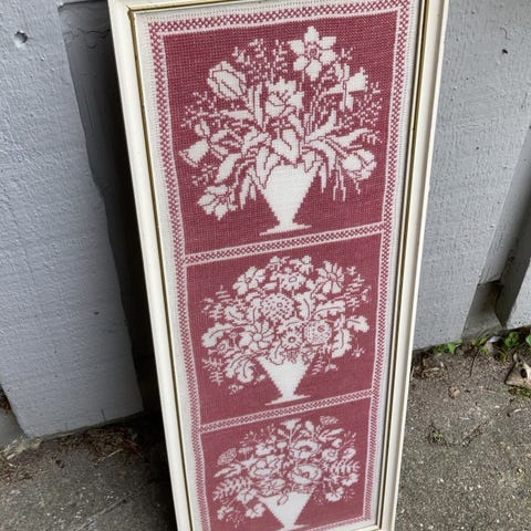 Korsstingsbroderi i ramme – 23 x 23 cm
