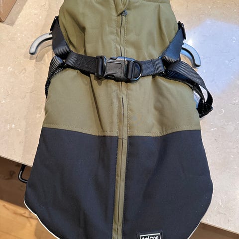 Lightweight, vandafvisende, reflekterende effekter. Slids med tovejslynlås til hundesnor. Lukkes med velcro - kan derfor justeres i mål. Tåler 30° vask