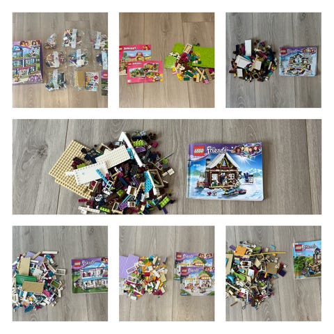 LEGO Friends legetøjssæt med forskellige figurer og tilbehør. Indeholder elementer til at bygge små scener og figurer fra Friends-serien.