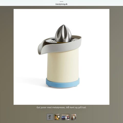 Flot, elektrisk citruspresser fra Sowden serien, designet af George Sowden for danske HAY. Juicepresseren har et smukt retro-inspireret design i en pastelgul nuance, så den både er en smuk og funktionel tilføjelse til køkkenet. Takket være det smarte design, er den også let at bruge - du laver hurtigt friskpresset juice af citrusfrugter uden frugtkød. Perfekt til en ekstra lækker morgenmad både på hverdage og i weekenden.