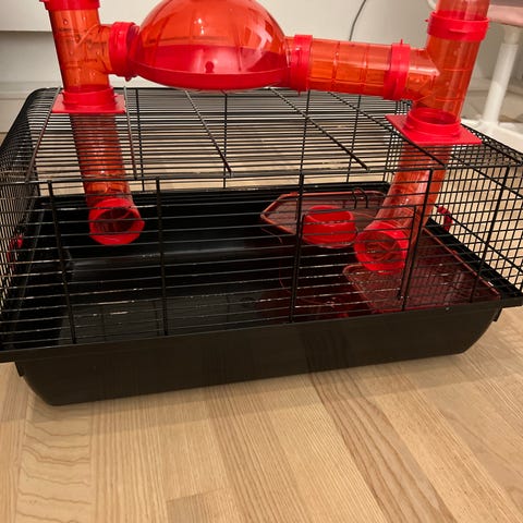 Transportbur/weekendbur til dværghamster/hamster:små gnavere. Størrelse 50x35 cm og ca. 30 cm højt.