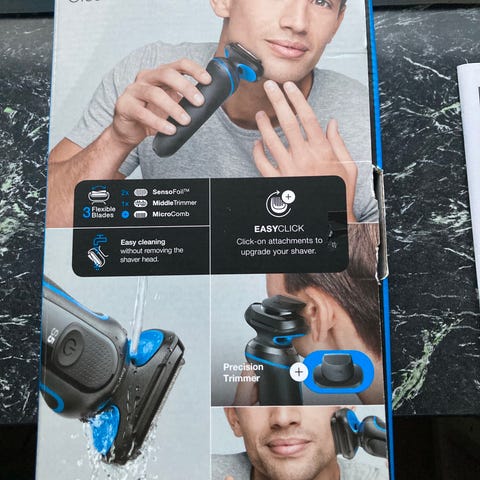 Braun Series 5 S5 barbermaskine med EasyClean teknologi. Inkluderer opladningsstation, oplader og ekstra trimmehoveder. Designet til effektiv barbering med nem rengøring. Farve: Sort og blå.
