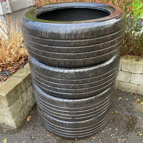 4 styk - 2x255-45-20 tommer og 2x235-50-20 tommer. De har siddet på en Skoda Enyaq.